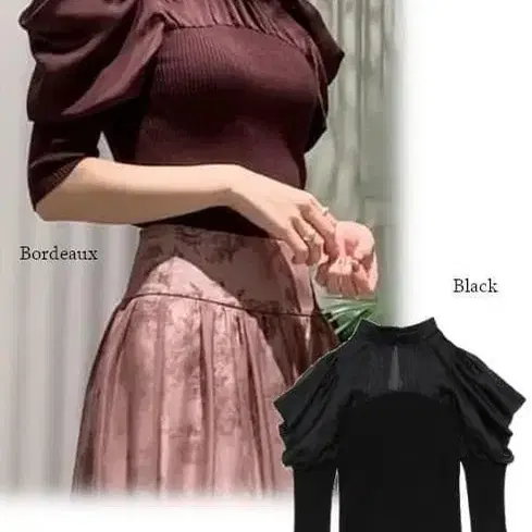 어깨부터 소매까지는 적당한 비침과 깔끔한 드레이핑을 겸비한 소재를, 몸판에는 깔끔하게 보이는 하이 게이지 니트를 사용했습니다. 아이보리, 그레이, 블랙, 보르도 4가지 색상으로 전개됩니다.