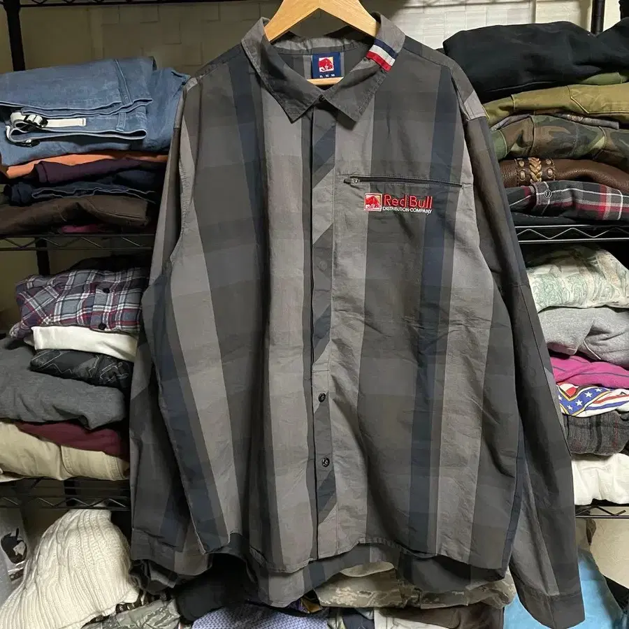 미국 빈티지 의류 Red Bull 워크 셔츠 체크 무늬 긴팔 셔츠 XL