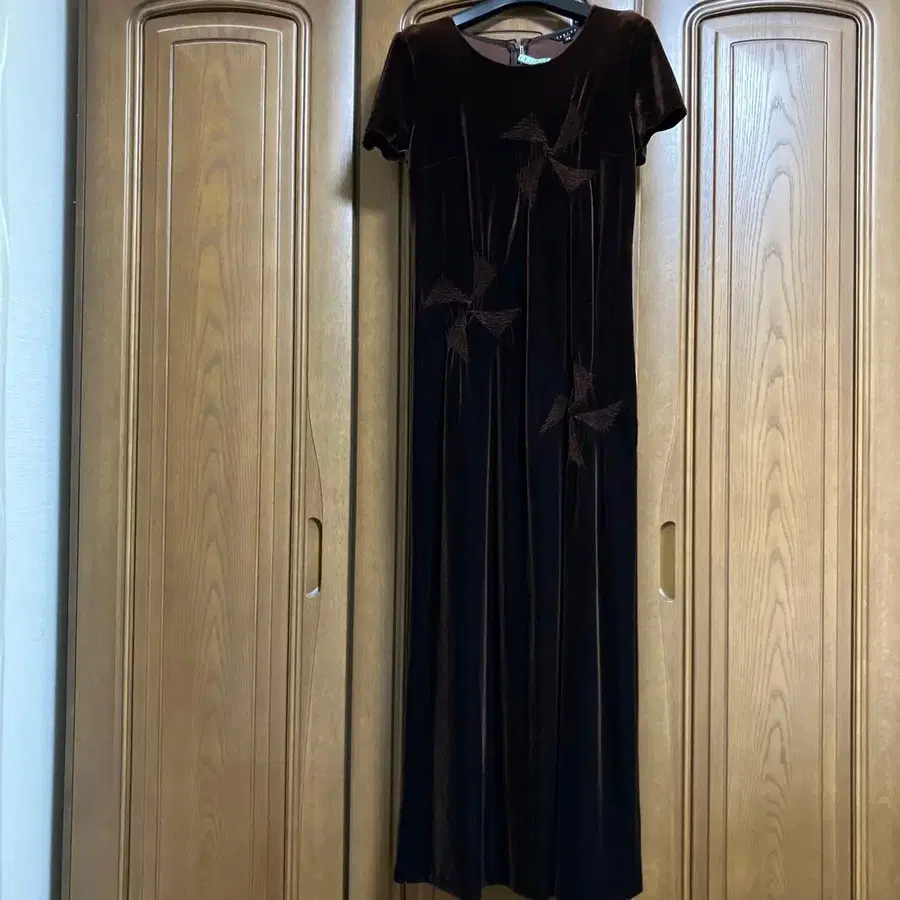 버터플라이 자수가 놓인 블랙 벨벳 롱 드레스. - 색상: 블랙 - 디자인: 버터플라이 모티브 자수 - 스타일: 롱 드레스 - 소재: 벨벳 - 소매 스타일: 반팔 방문해 주셔서 감사합니다.