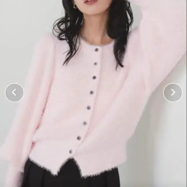 윤기 있는 블랙 버튼이 악센트가 되어, 너무 달콤하지 않고 시크하고 세련된 분위기를 풍깁니다.