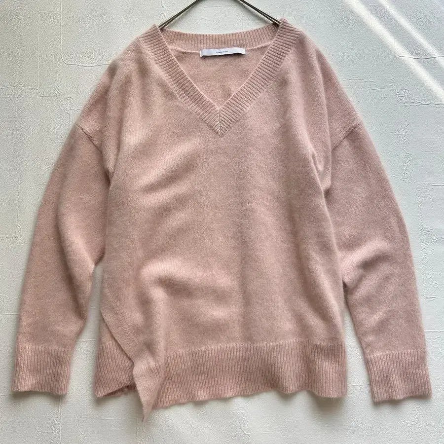 프레임워크의 V넥 니트입니다. 사이드에 은은한 디자인이 들어가 있어 적당히 여유 있는 실루엣입니다. 데님, 슬랙스, 스커트 등 어디에나 잘 어울리며 가을/겨울 스테디셀러로 활용하기 좋은 아이템입니다. 부드러운 핑크색과 포근한 촉감으로 따뜻한 분위기를 연출합니다.