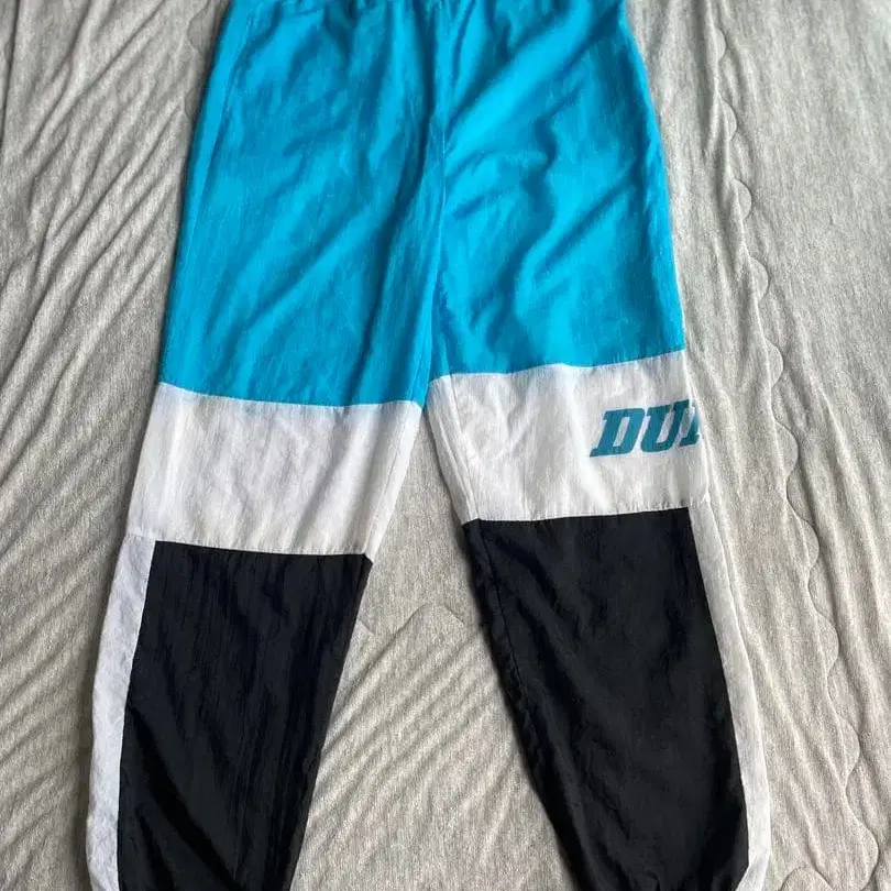 트리콜로르 디자인의 DUNLOP 조거 팬츠, 허리밴딩으로 쾌적한 핏감.