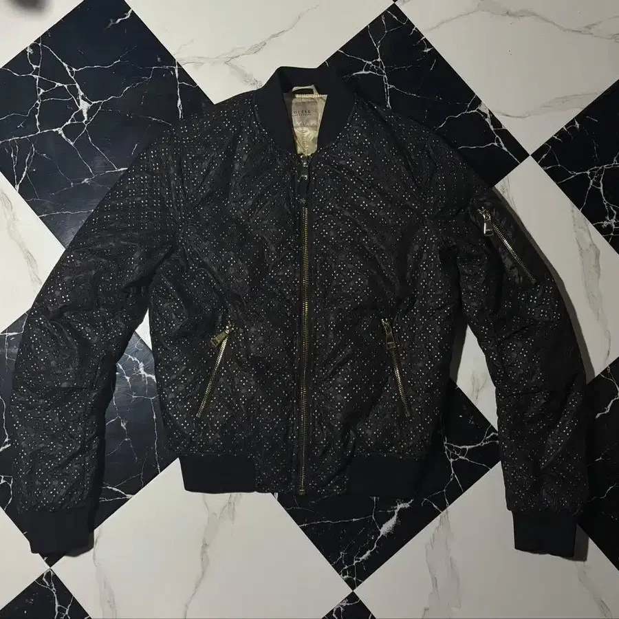[GUESS] 새상품급 별 스터드 블랙 봄버 자켓 블루종