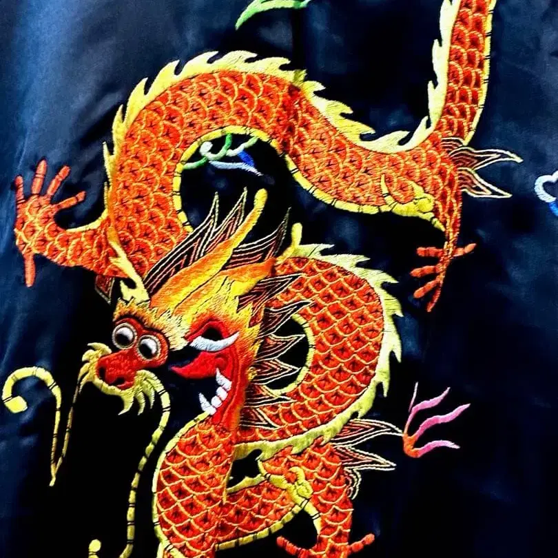 공작 용 드래곤 자수 일본풍 패턴 블랙 가운 M