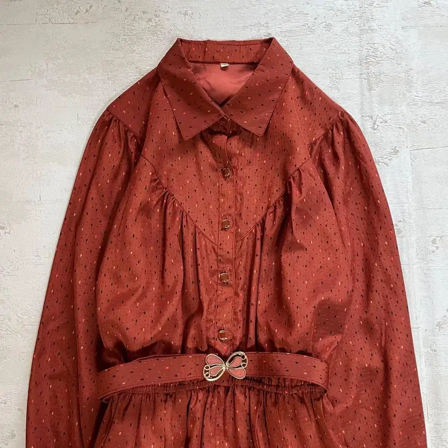 가슴 부분의 절개와 풍성한 소매가 쇼와 레트로 특유의 고급스러운 분위기를 연출해 줍니다.