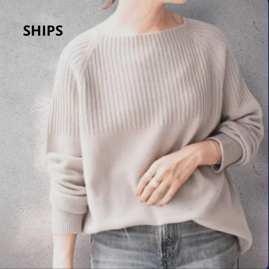 새상품급 쉽스 부드러운 캐시미어 리브 요크 풀오버 니트 라이트 그레이