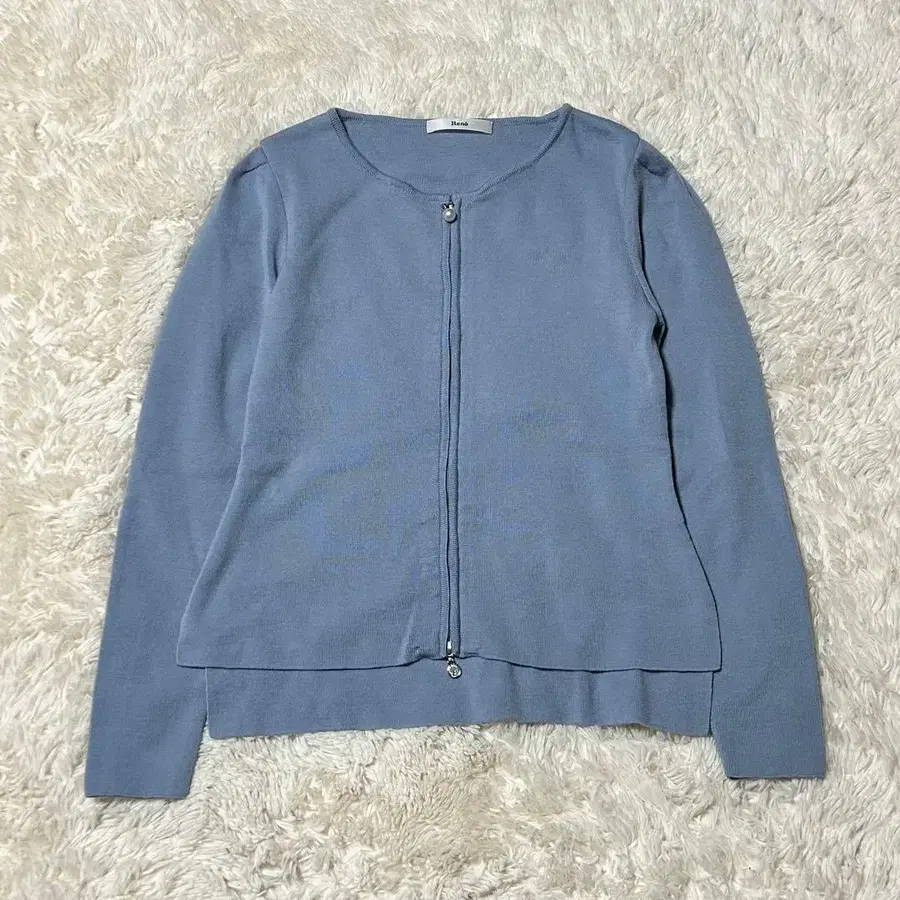 컨디션 최상 르네 Rene 펄 더블 지퍼 울 가디건 블루 34
