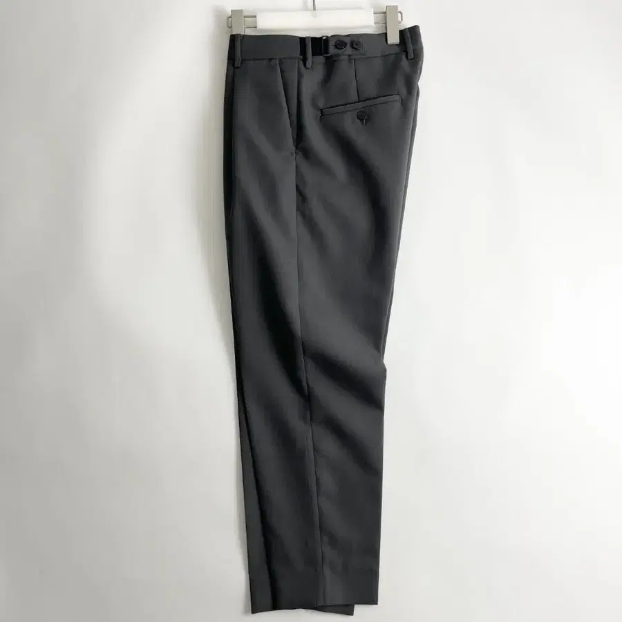 남성적인 인상의 폴리에스테르 울 개버딘 조직의 원단을 사용한 사이드 조절 팬츠. 조절기는 3단계로 조정 가능하며, 고무 사양이므로 핏감과 착용감이 좋습니다. 사이즈감은 빅 사이즈이며, 1 플리츠의 편하게 입을 수 있는 테이퍼드 실루엣도 특징 중 하나입니다. 심플한 디자인으로 자켓이나 블루종 등 폭넓은 코디네이트에 활용할 수 있습니다.