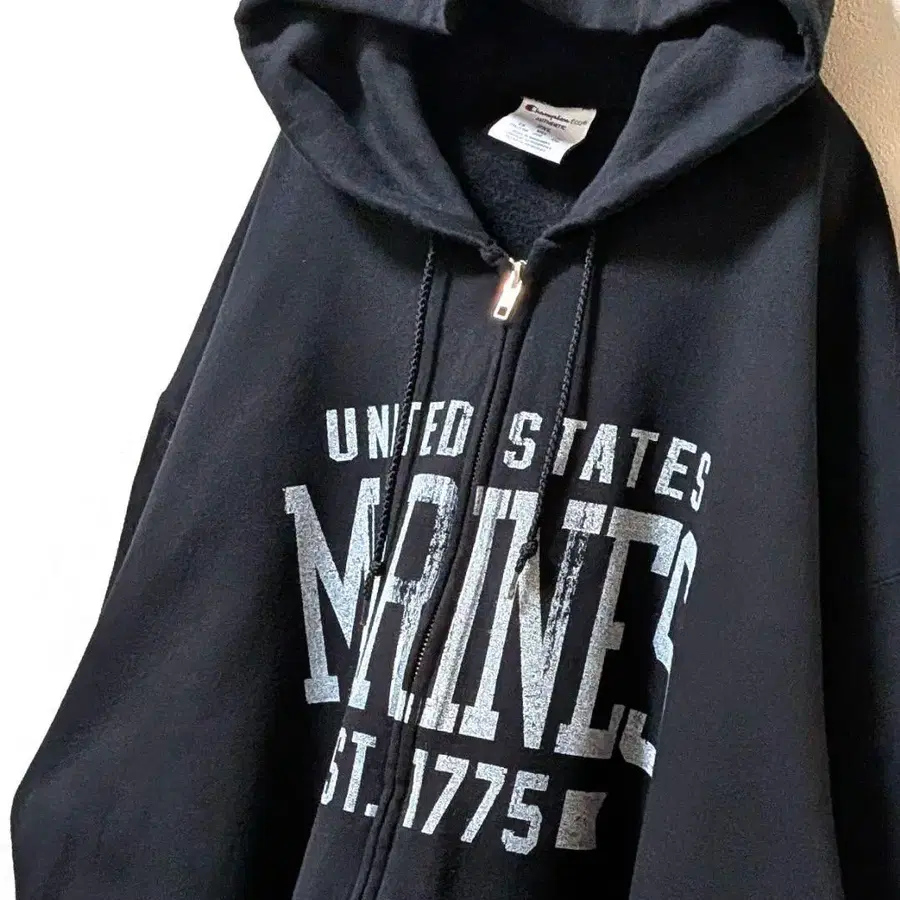 챔피온 유나이티드 스테이츠 마린즈 풀 집업 후드티 블랙 2XL 구제 의류