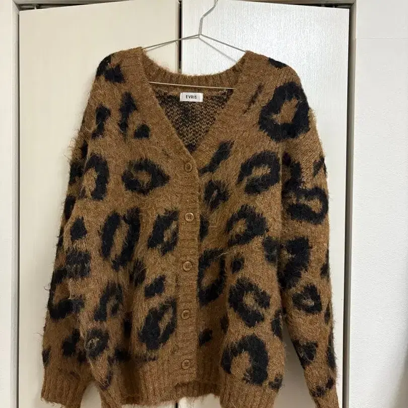 임팩트 있는 레오파드 무늬의 샤기 니트 가디건입니다.