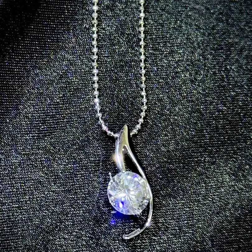 실버 펜던트에 큰 지르코니아가 빛나는 목걸이. 새상품은 아니지만 1회만 사용했습니다. 신경 쓰이시는 분은 삼가해 주세요. - 디자인: 실버 펜던트에 지르코니아 - 사이즈: 펜던트 직경 약 1.0cm - 체인 길이: 사진으로 판단 부탁드립니다. 방문해 주셔서 감사합니다. 색상 - 실버 계열 부속품 - 상자 (이 목걸이용은 아니지만 함께 보내드립니다.)