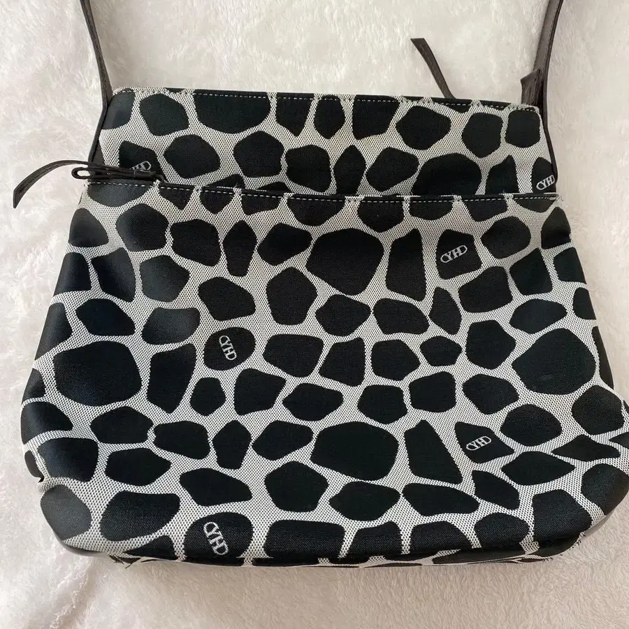 자동 번역되었어요. 원문보기Yukiko Hanai의 블랙과 화이트 레오파드 무늬 디자인 숄더백, 조정 가능한 스트랩 포함