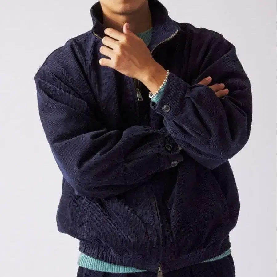 코듀로이 스탠드 카라 집업 블루종입니다.