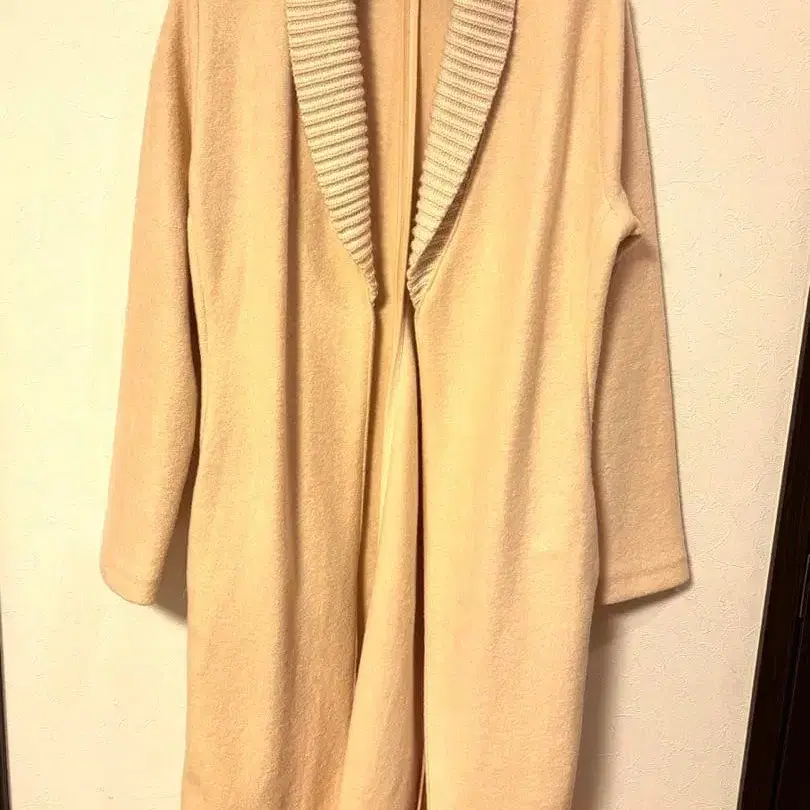 부드러운 베이지 컬러에 니트 소재의 숄카라가 악센트가 된 고급스러운 디자인입니다.