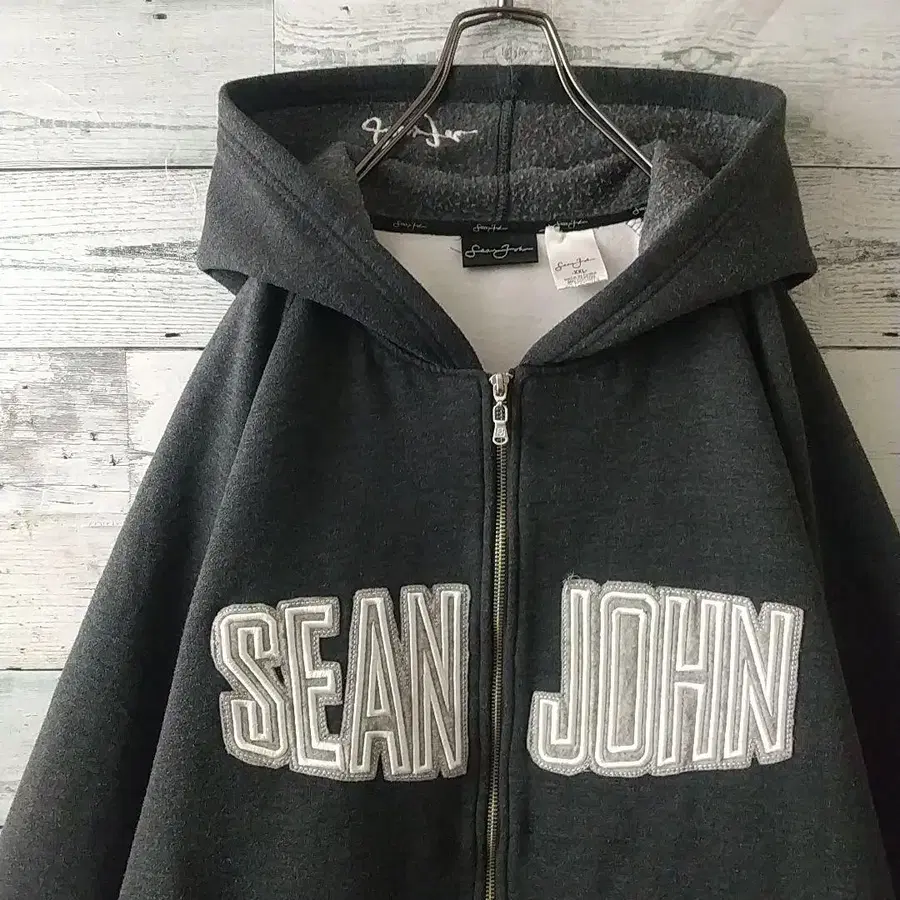 레어 사이즈 숀 존 자수 센터 로고 후드 로고 리브 라인 후드티