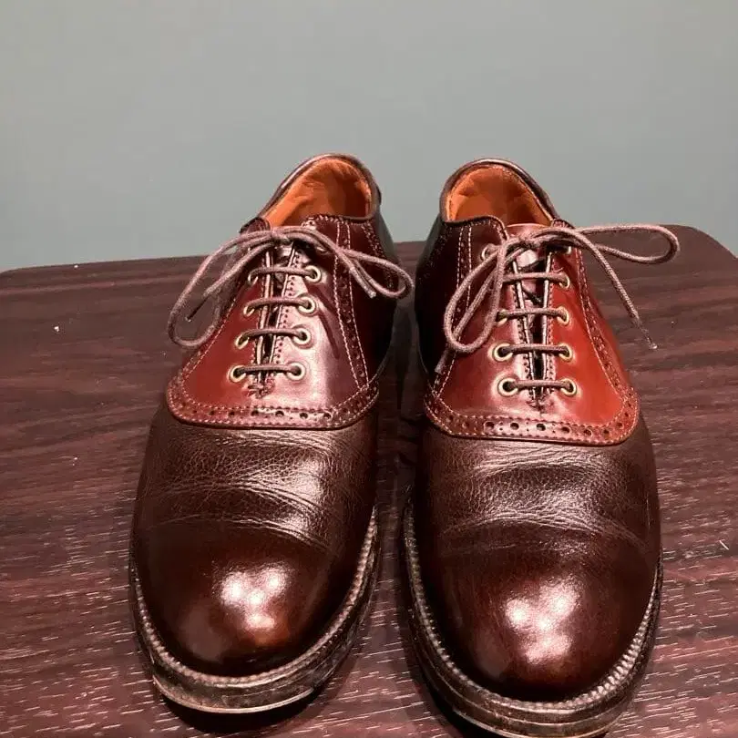브랜드 / Alden 올덴 스타일 / Traditional Saddle 새들 슈즈 라스트 / 발리 라스트? 소재 / 알파인 카프 x 코도반 밑창 / 가죽 컬러 / 브라운 x 버건디 사이즈 / 6 1/2 D 부속품 / 없음 상태 ※ 약간의 착화 흔적과 스크래치는 있지만, 착용 횟수가 적어 비교적 상태는 양호합니다. ※ 코도반 상품은 소재 특성상 색상 불균일, 얼룩, 잉크 얼룩, 주름, 흠집 등이 있으므로, 위 사항을 이해하신 후 구매를 검토해 주시기 바랍니다. 코멘트 소재가 다른 동일 색조의 가죽을 조합한 〈ALDEN (올덴)〉 새들 슈즈. 영국에서 예전부터 볼 수 있는 베이직한 새들 슈즈의 콤비네이션을 이미지하여 디자인했습니다. 코도반과 알파인 카프의 조합에 악센트로 골드 아일렛을 맞춘 사양입니다. 라스트는 발 아치 부분이 느슨하여 안정감 있는 발리 라스트를 채용했습니다. 미국적인 느낌으로 일본에서도 인기 있는 목형입니다. 올덴의 세계관이 표현된 아메리칸 트래디셔널을 느낄 수 있는 한 켤레입니다. 기타 사용에 지장이 있을 정도의 데미지는 없지만, 어디까지나 중고품이므로 흠집, 오염 등은 반드시 있습니다. 아웃솔에는 앞코 스틸, 러버 사양이므로 가죽 밑창이 부담스러운 분들께 추천합니다. 위 사항을 이해하신 후 구매를 검토해 주시기 바랍니다. 질문 등 있으시면 댓글로 부탁드립니다.