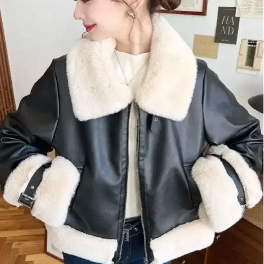 빈티지한 느낌의 인조 가죽에 복슬복슬한 퍼를 조합한 플라이트 자켓입니다 ♪