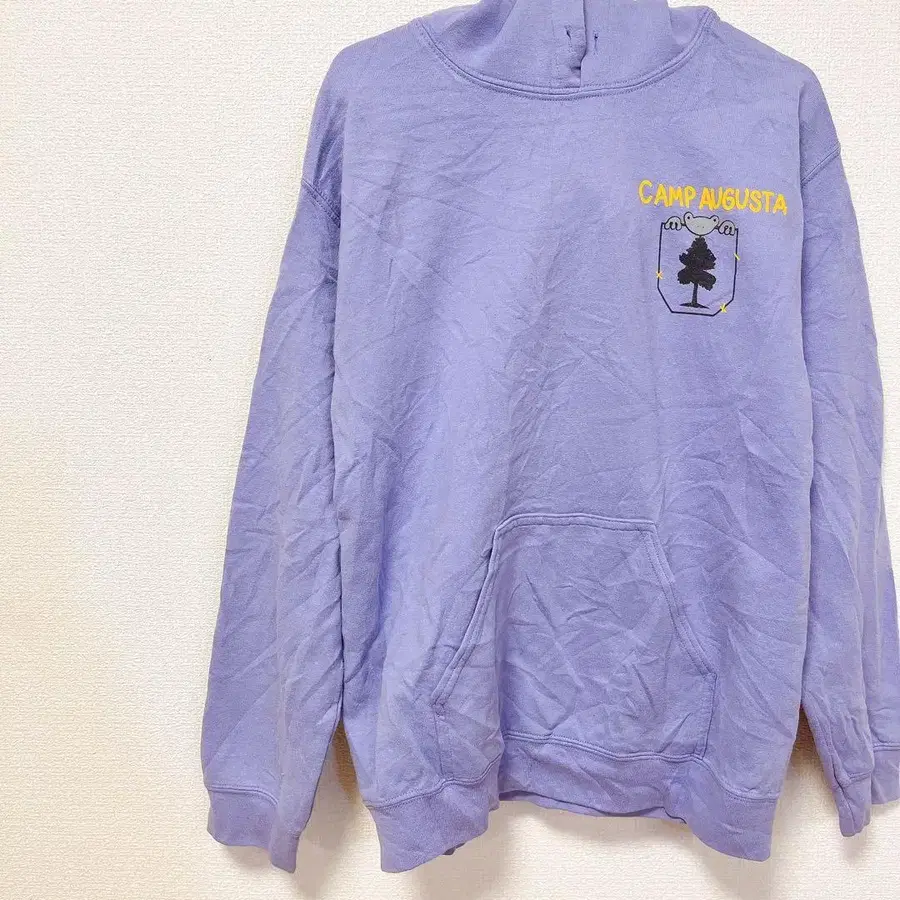 자동 번역되었어요. 원문보기캠핑 오거스타 로고가 새겨진 보라색 GILDAN 후드티.
