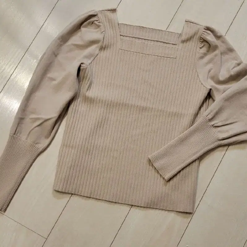 노블 Noble 베이지 퍼프 슬리브 스퀘어넥 스퀘어
