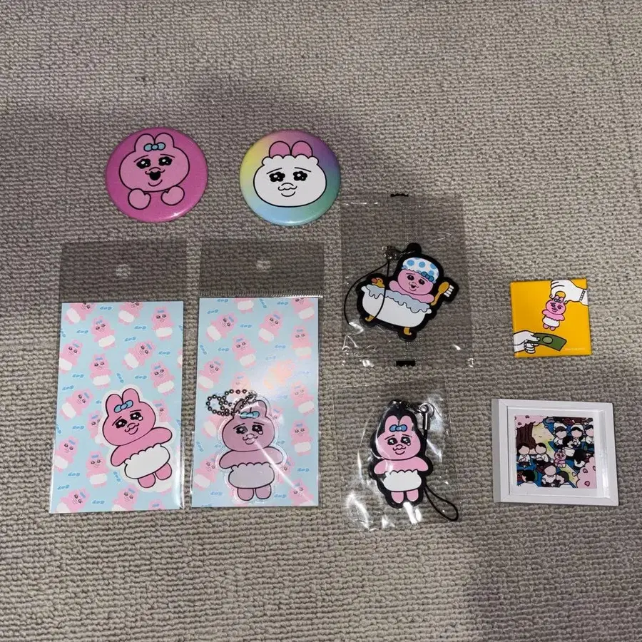 즉시 구매 가능 ◯ 낱개 판매 불가 x 대부분 빤쮸토끼 팝업 스토어에서 구매했던 것으로 기억합니다. 배지 3개, 스티커 1개, 아크릴 키링 1개, 스트랩 2개, 마그넷 1개 세트입니다. 오른쪽 아래 꽃을 보고 있는 것이 마그넷입니다.
