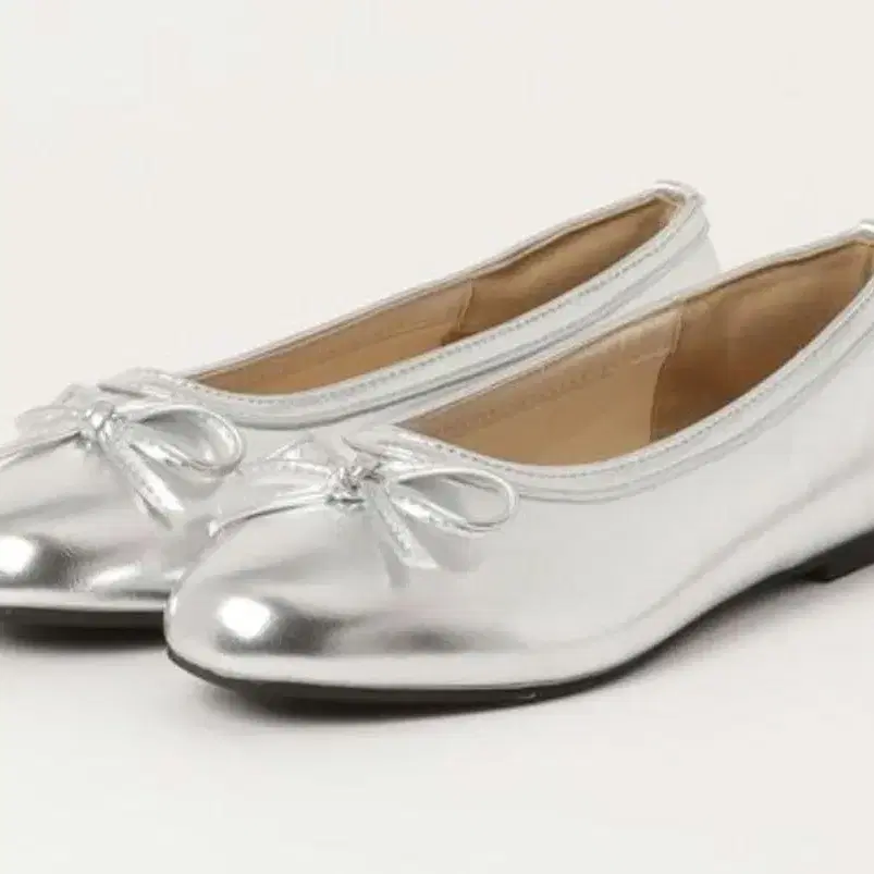 새상품 실버 라운드토 플랫 발레 슈즈 레인 펌프스