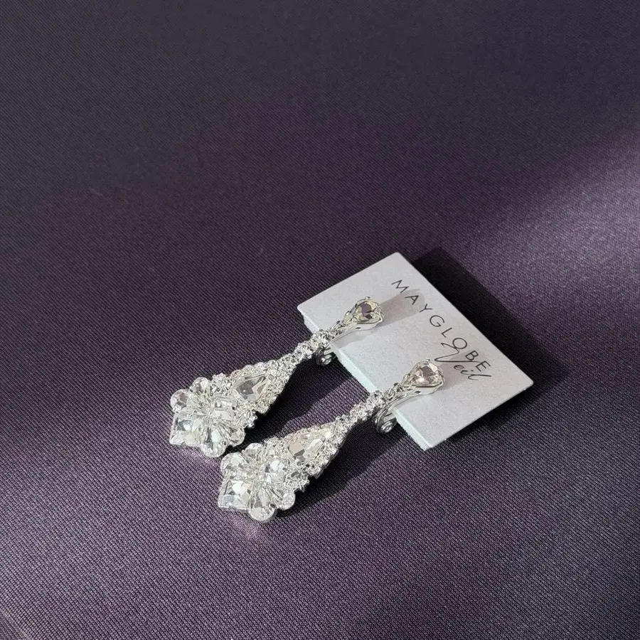 MAYGLOBE 실버 크리스탈 드롭 귀찌