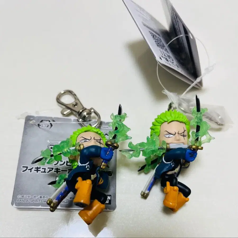 검을 든 조로의 피규어 키링, 그린 헤어가 특징입니다.