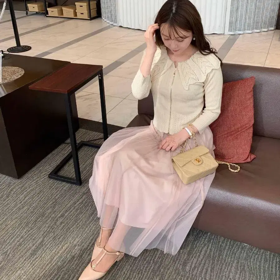 풍성하고 시어한 느낌의 튤 스커트와 함께 매치하여 페미닌한 코디도 추천합니다!