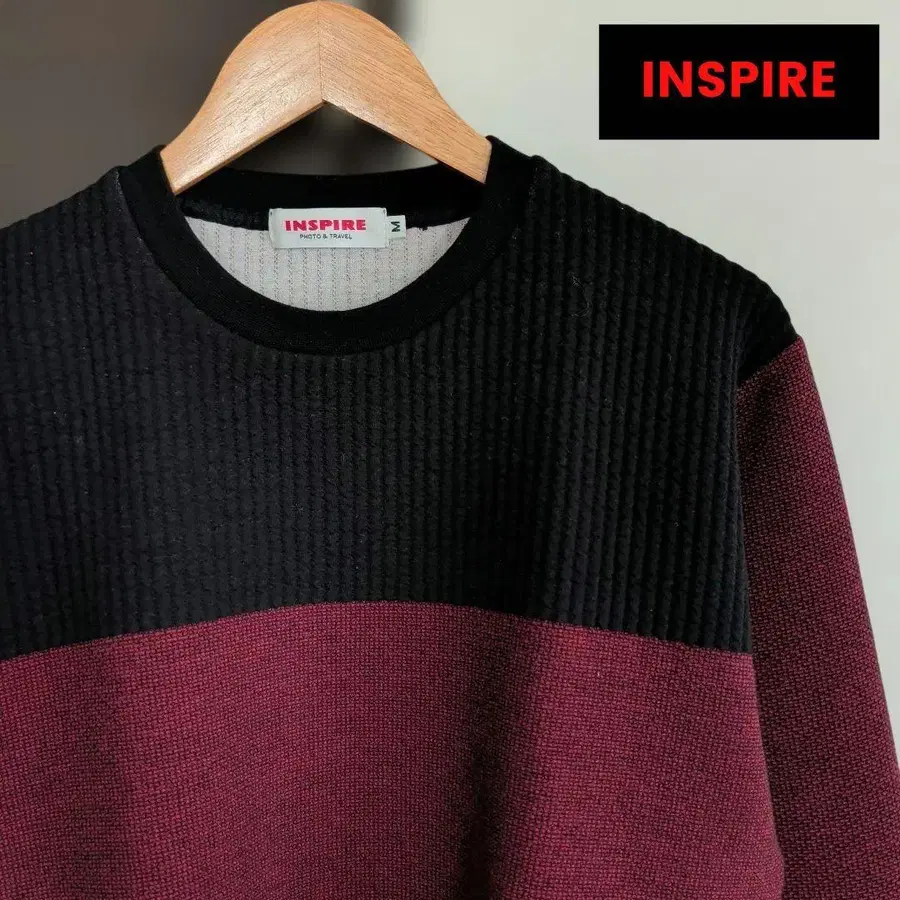 보르도와 블랙의 바이컬러 절개 크루넥 맨투맨.