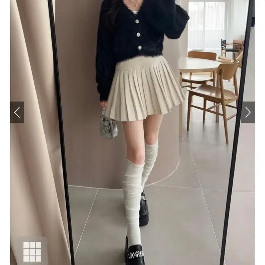 보송보송한 페더 니트에 화려한 라메가 은은하게 더해진 가디건.