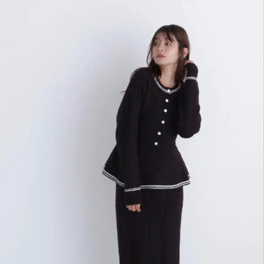 NATURAL BEAUTY BASIC 페플럼 케이블 니트 셋업