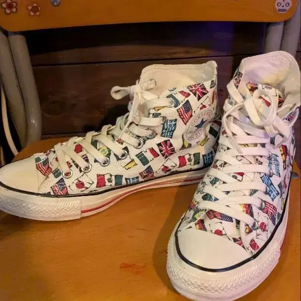 컨버스 프린트 패턴 하이컷 스니커즈 만국기