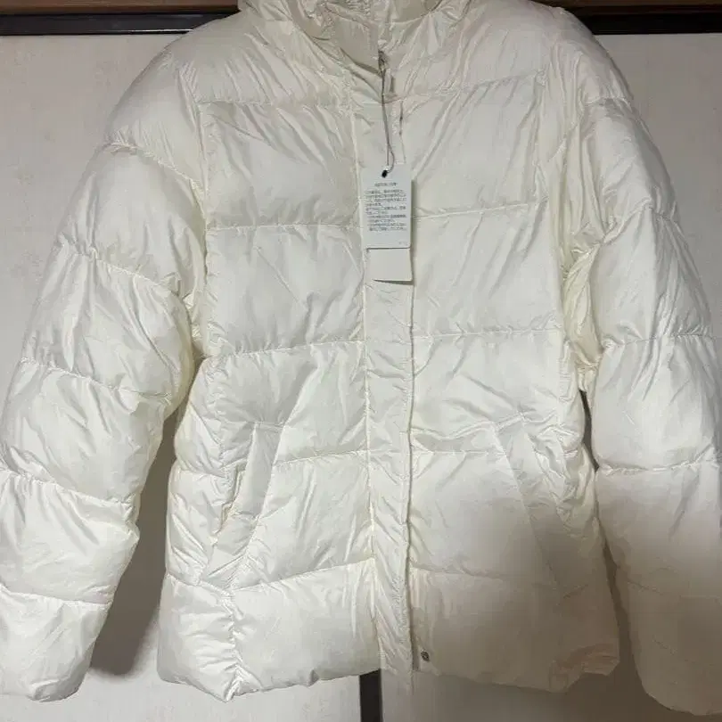 택 포함 미사용 화이트 다운 자켓 M 사이즈 경량 방한
