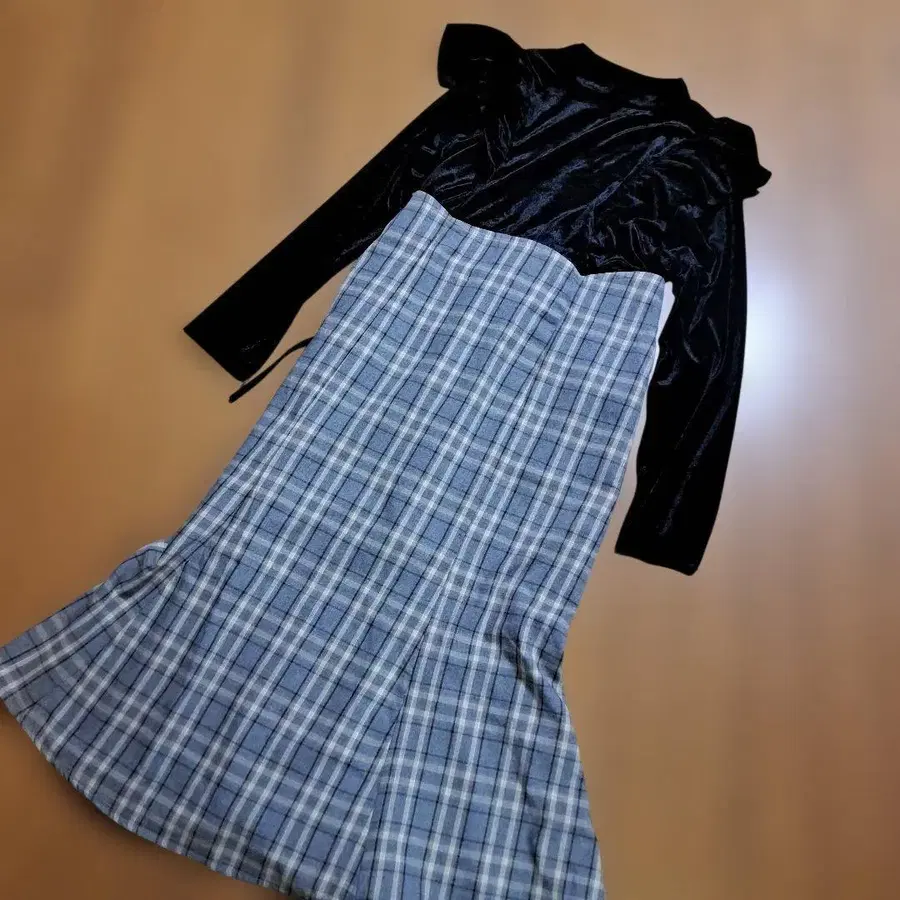 도킹 원피스 벨로아 x 체크 스커트 LL~4L 상당