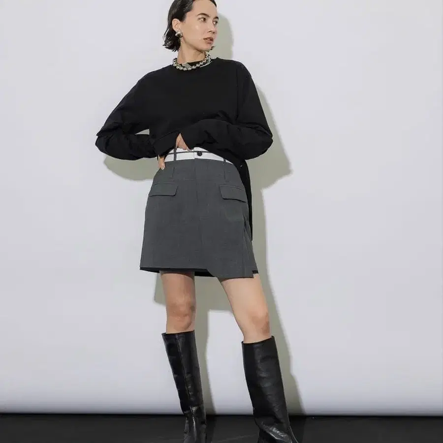 자켓의 밑단과 포켓 디자인을 접목한 미니 스커트입니다.