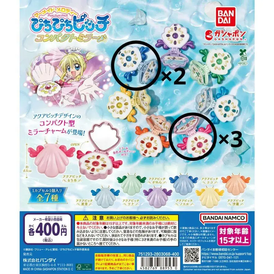 피치피치 피치 컴팩트 미러 참 가챠 루치아 3개 & 노엘 2개 세트