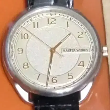 세트 내용: 본체, 박스, 사용설명서, 보증서 (정품 보증 1년) 실버 다이얼과 블랙 가죽의 쿼츠 손목시계. 교환용 벨트 포함.