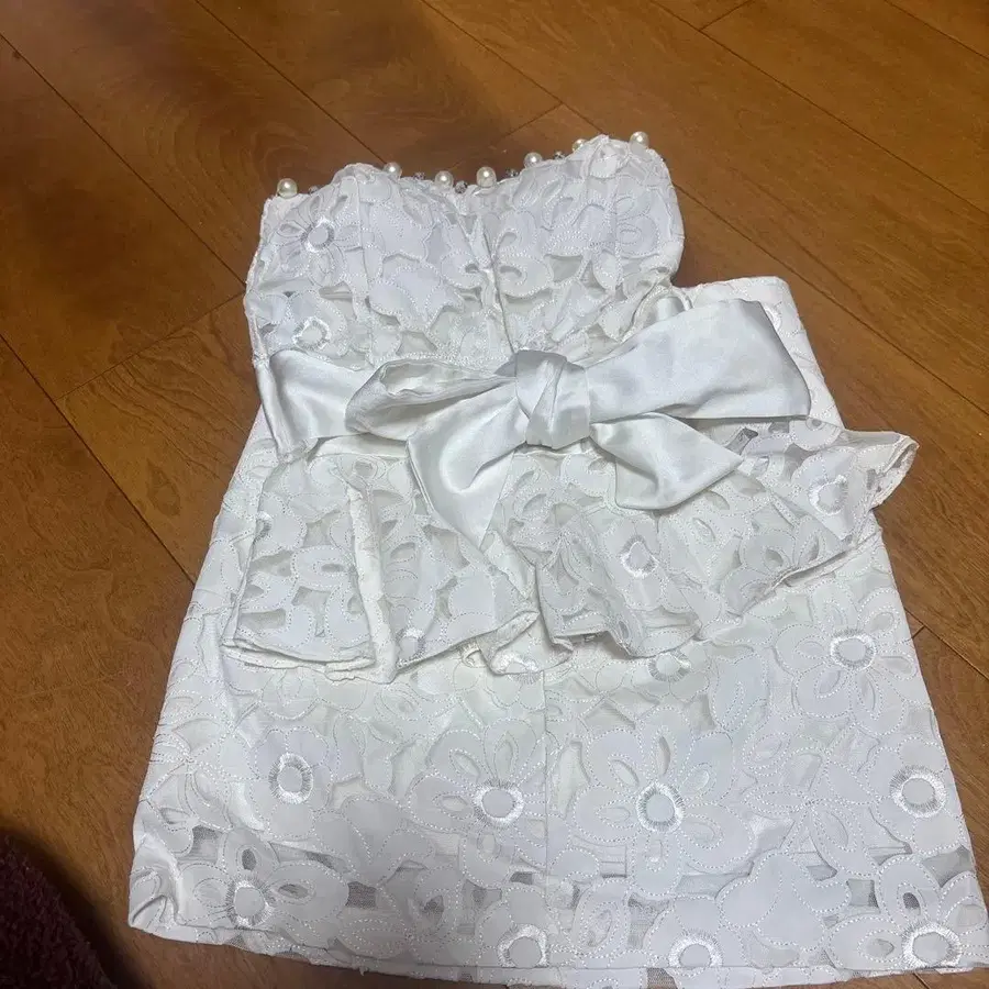 화이트 레이스 드레스 펄 리본 포함