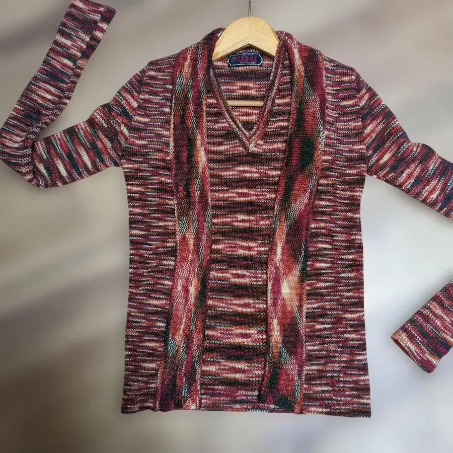 레트로. 빈티지 - 멀티 컬러 V넥 니트 가디건 & 베스트 SET
