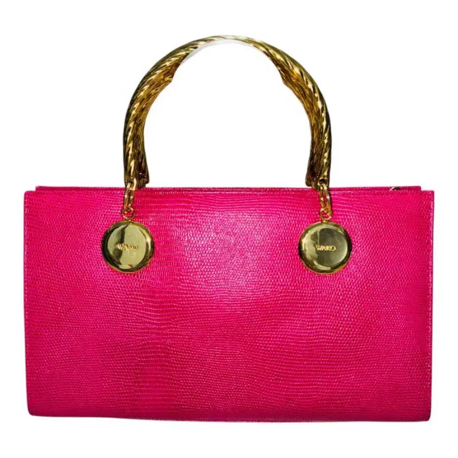 긴자 WAKO의 리자드 엠보 핸드백입니다. 마젠타에 가까운 핑크색으로, 특징적인 트위스트 골드 핸들과 금장 장식이 엘레강트한 디자인입니다.