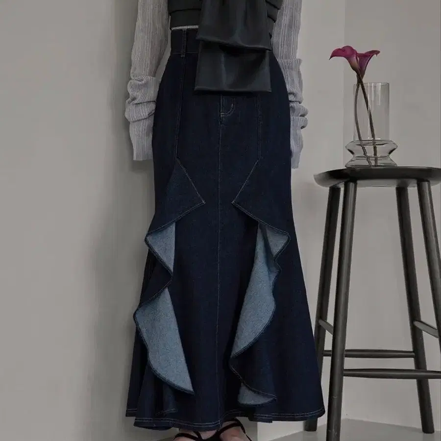 mideal 프릴 머메이드 데님 스커트 인디고 블루