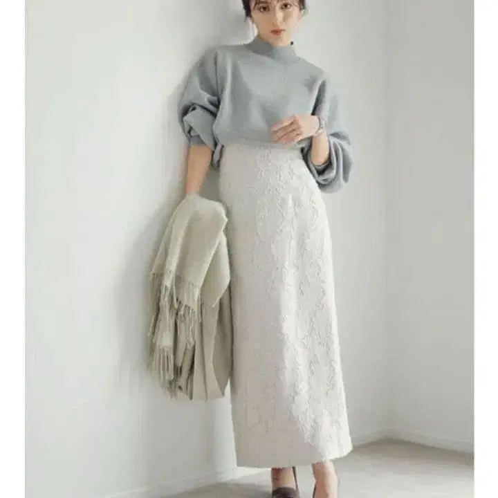 심플한 상의에 매치하는 것만으로도 고급스러움을 더해주는 스커트입니다.