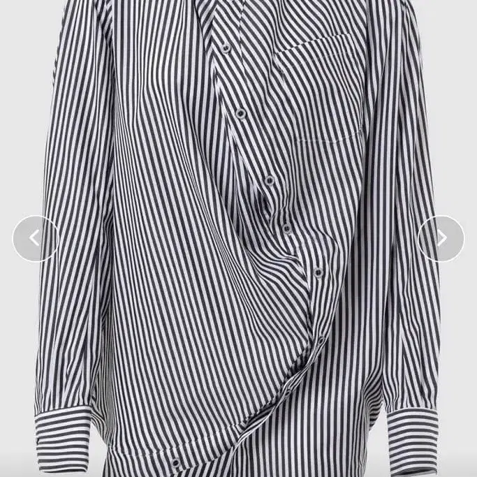 언리얼에이지의 스테디셀러 볼 셔츠입니다. 사이즈 38 정가 37,400엔 시착만 한 상품입니다. ANREALAGE(언리얼에이지) 디자이너 모리나가 쿠니히코. A REAL(일상), UN REAL(비일상), AGE(시대)를 의미하는 ANREALAGE(언리얼에이지). 언리얼에이지 스테디셀러 볼 셔츠의 원단을 업데이트하여 스트라이프 볼 셔츠로 제작. 섬세한 120수 합사를 사용하여, 보통의 브로드보다 짜임 밀도를 높인 220수 짜임 밀도의 브로드 원단을 사용. 텍스타일에는 액체 암모니아 가공을 하여, 탄력이 있으면서도 드레이프가 아름답게 보이는 유연한 질감을 부여함. 볼의 입체에 맞춰 제작된 스트라이프 셔츠는 신체에 따라 규칙적이었던 패턴이 새로운 무늬를 만들어내며, 자연스러운 드레이프가 볼륨감 있는 실루엣으로 변환됨. 신체와는 다른 모티브에서 제작함으로써 젠더리스한 제안이 가능한 것도 특징.