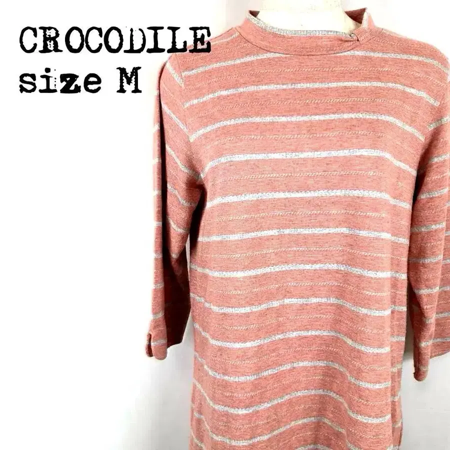 CROCODILE 크로커다일 보더 니트 티셔츠 핑크 x 그레이