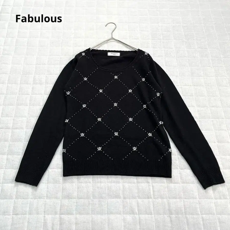 [패뷸러스] 니트 풀오버 긴팔 둥근 카라 스톤 비쥬 M 블랙