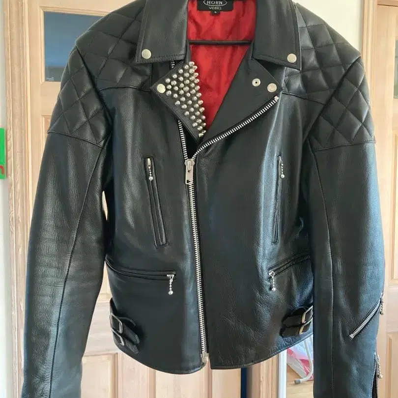 자동 번역되었어요. 원문보기스터드 장식이 있는 블랙 가죽 더블 라이더 자켓, L 사이즈, 레드 퀼팅 안감. 패드 스터드 장식 롱 재킷. 저스트 사이즈라고 생각해서 구매했는데, 팔이 너무 끼고 다이어트 효과가 낮아 티셔츠만 입을 수 있어서 내놓습니다.