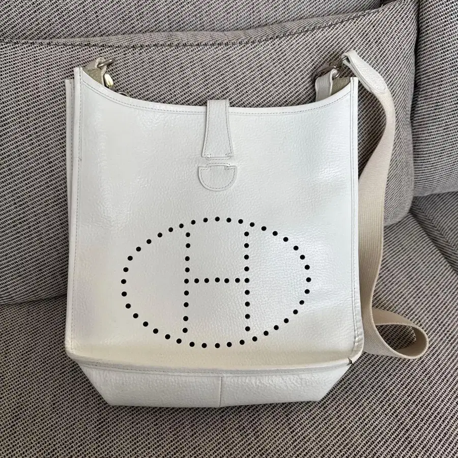 화이트 가죽 H 로고 도트 디자인 숄더백입니다. - 브랜드: 하이크라스 - 색상: 화이트 - 소재: 가죽 - 디자인: H 도트 디자인 ※ 가방 바닥 (정면에서 보았을 때 오른쪽 모서리)과 안쪽 면, 몸에 닿는 면에 약간의 흠집이 보입니다 (사진 3, 4, 5번째). 이 점을 이해해 주시는 분께 양도합니다. 방문해 주셔서 감사합니다.