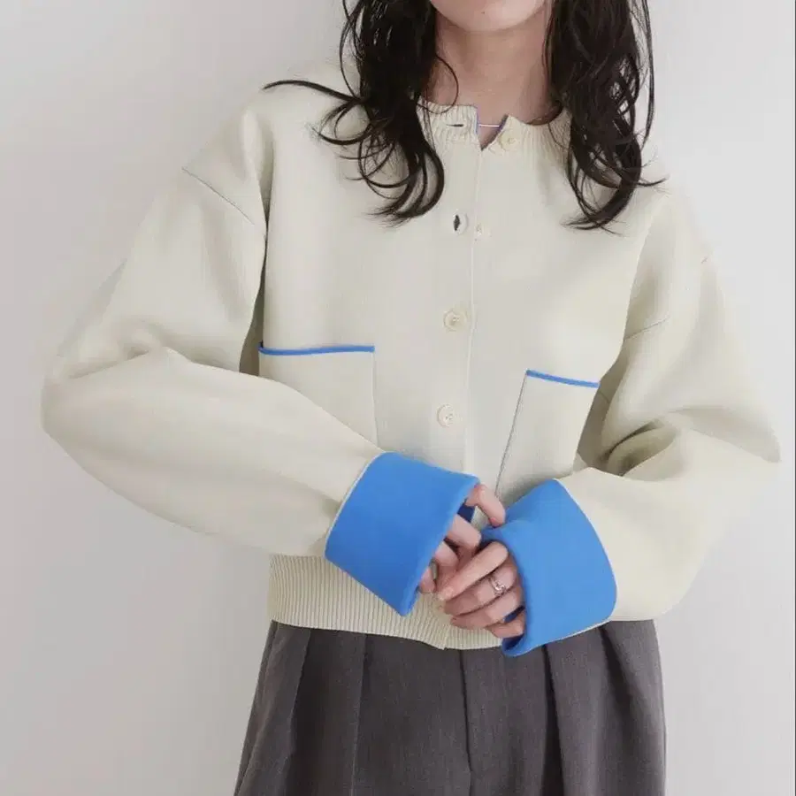 LIAN 바이컬러 니트 가디건 - 색상: 아이보리 x 파랑 방문해 주셔서 감사합니다. 몇 번 착용했습니다. 소매가 바이컬러로 귀엽습니다.