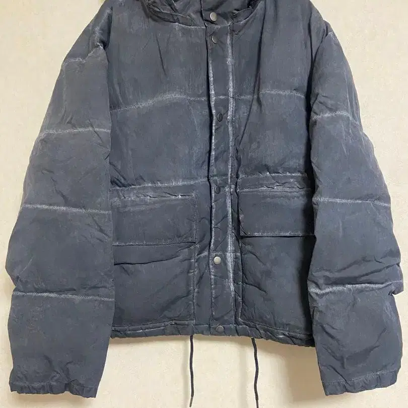 페이드 가공이 특징인 충전솜 다운 자켓.