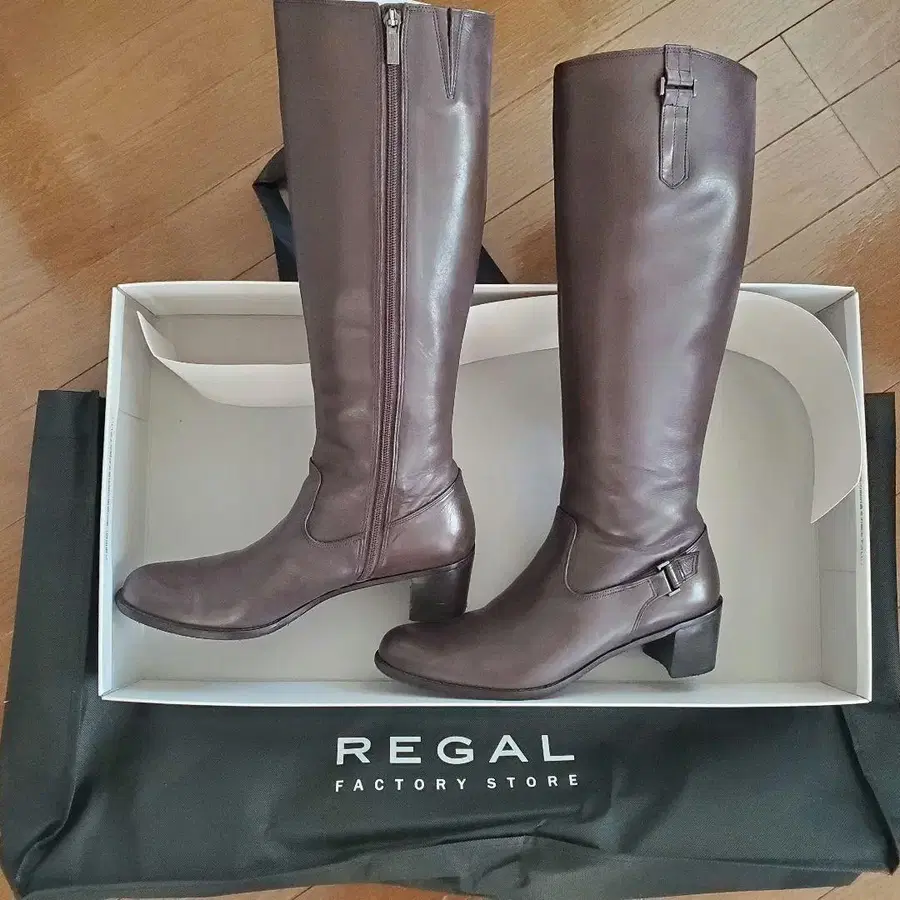 REGAL 브라운 롱 부츠 중간 힐